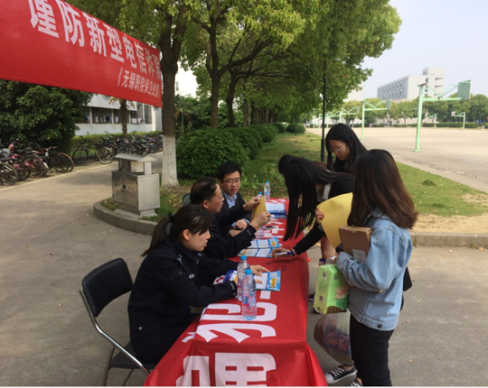 近期高校学生中发生多起电信网络诈骗案件,使学生受到一定的经济损失。为切实增强全校师生防骗意识,避免上当受骗,保障校园安全稳定。4月26日下午,雪浪派出所冀晓华、戴科两位警官与保卫处联合开展“时刻绷紧防范之弦,谨防新型电信网络诈骗”安全教育宣传活动。