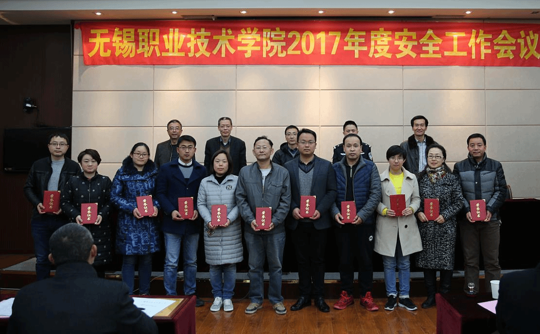 最后,龚方红校长与职能部门、二级学院代表签定《无锡职业技术学院2017年度维稳与消防安全工作责任书》,并做重要讲话。对做好2017年安全工作提出三点要求:一是统一思想,理清思路,进一步强化安全工作的重要性。强调要严格落实安全工作一票否决制。二是落实责任,守土有责,切实完善安全管理的责任体系。三是健全机制,强化监督,对安全工作严格规范管理。牢牢把握主动权,强化软硬件建设,提升应急处置能力,维护校园稳定,为学校创建优质卓越高职院创造和谐稳定的发展环境。