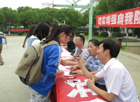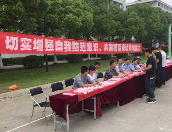 近期高校学生中发生多起网络诈骗、电信诈骗等新型诈骗犯罪案件,使学生钱物受到一定的损失。为切实增强全校师生防骗意识,避免上当受骗。进一步促进学校的安全教育宣传工作,保障校园安全稳定,5月28日下午,无锡市公安局滨湖分局雪浪派出所冀晓华、邓钱萍警官与我校保卫处、学生处联合开展“警钟长鸣,防范诈骗”安全教育宣传活动。