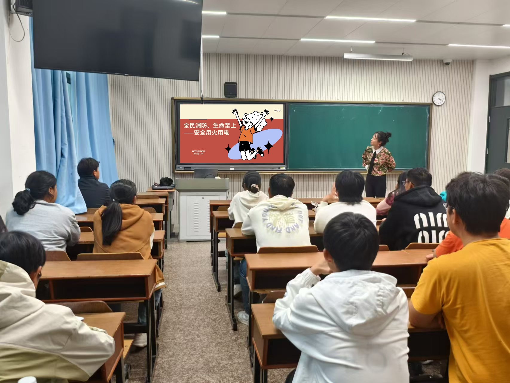 学校积极创新宣传方式,推动消防教育由“单向讲授”向“多维互动”转变。各学院积极组织开展消防安全主题班会,通过案例剖析、警示视频展播、小组讨论交流等方式,引导学生认识火灾风险,掌握基本防范技能。校园宣传屏等持续滚动播出消防安全提示,营造“人人关注、时时提醒”的浓厚氛围。