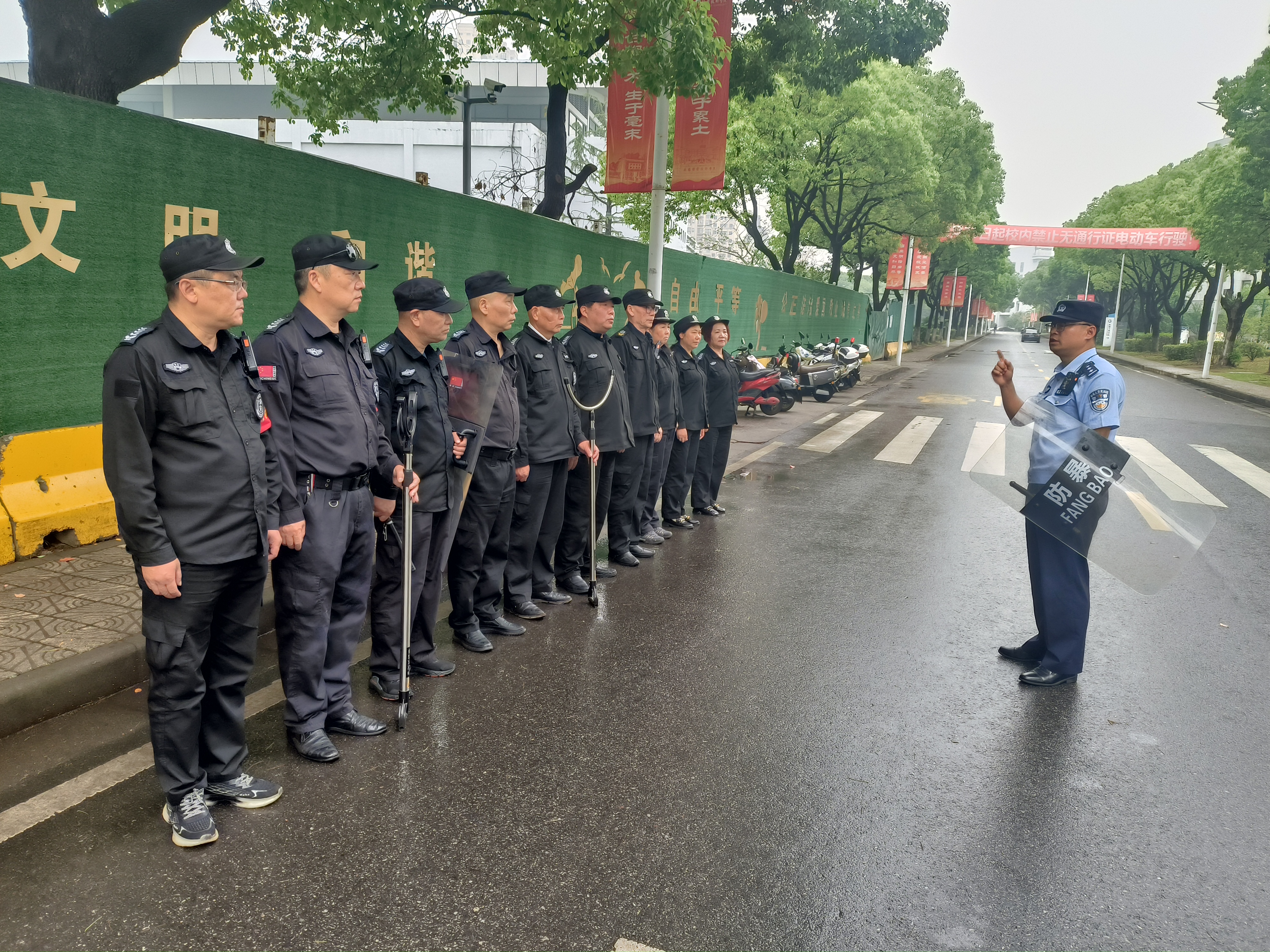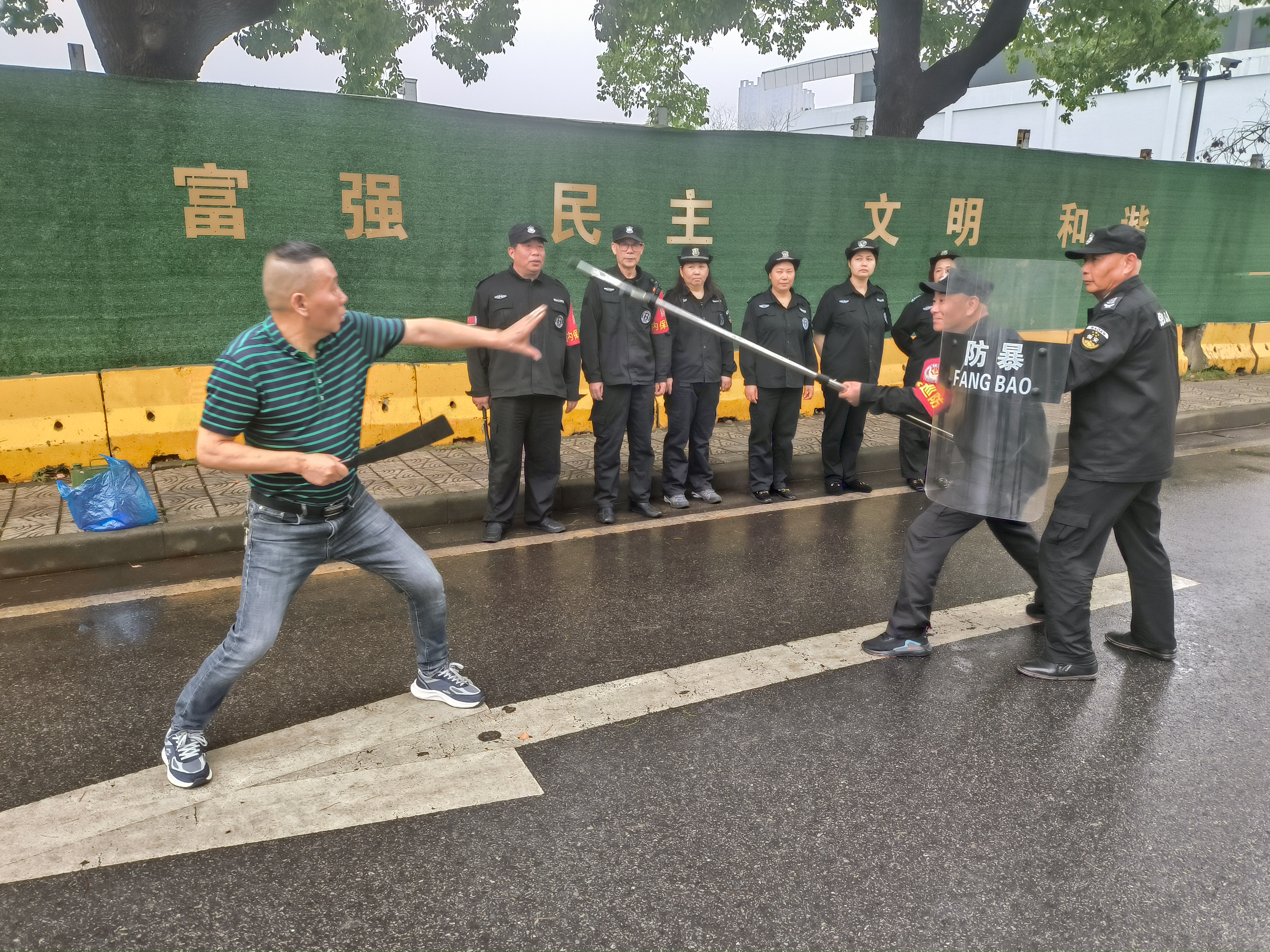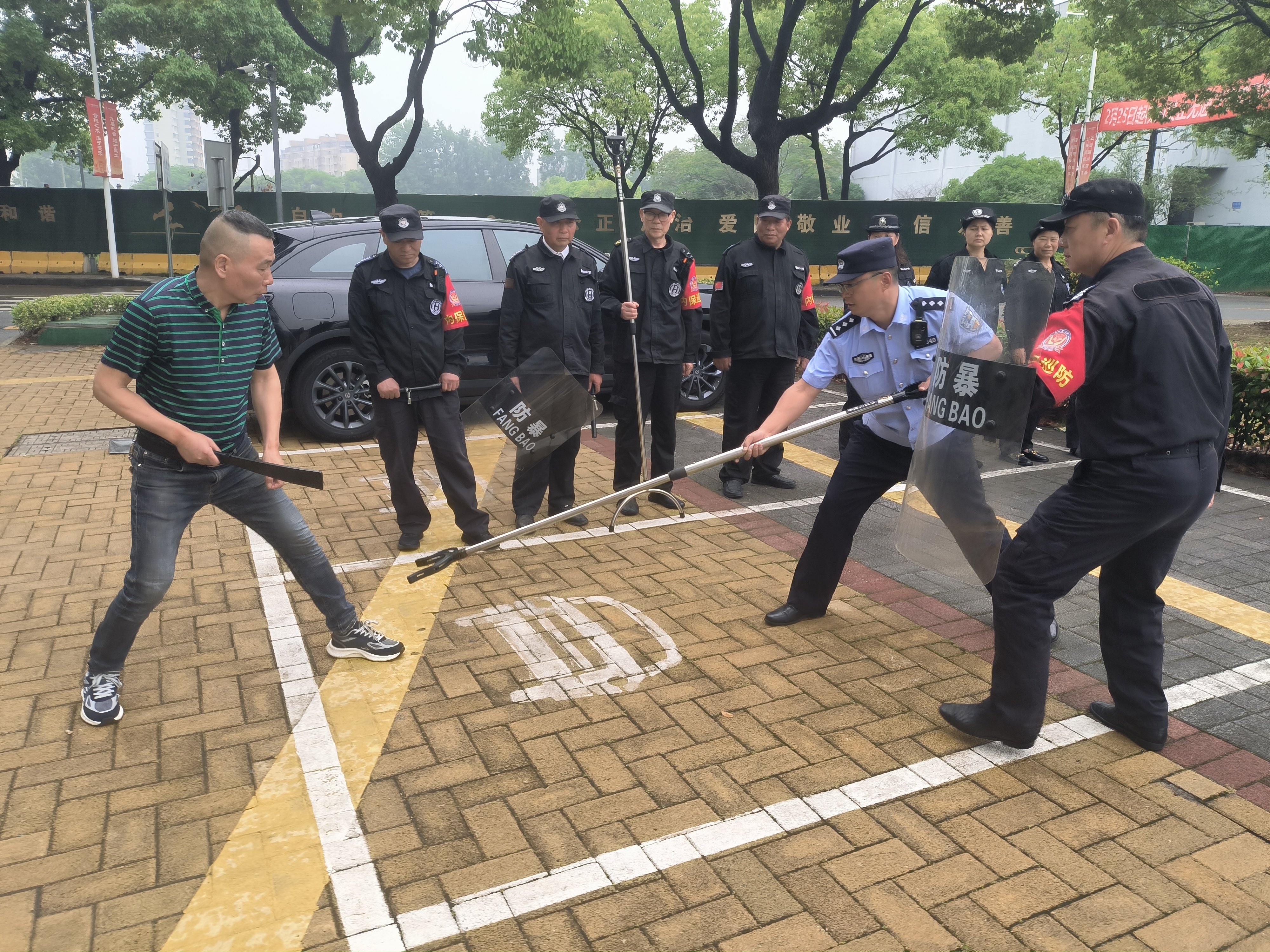 为提高保安人员面对突发事件时的心理素质,增强保安人员处理暴力突发事件的应急能力,5月31日上午,保卫处组织开展校园反恐防暴应急演练,演练由雪浪派出所康伟峰警官指导。