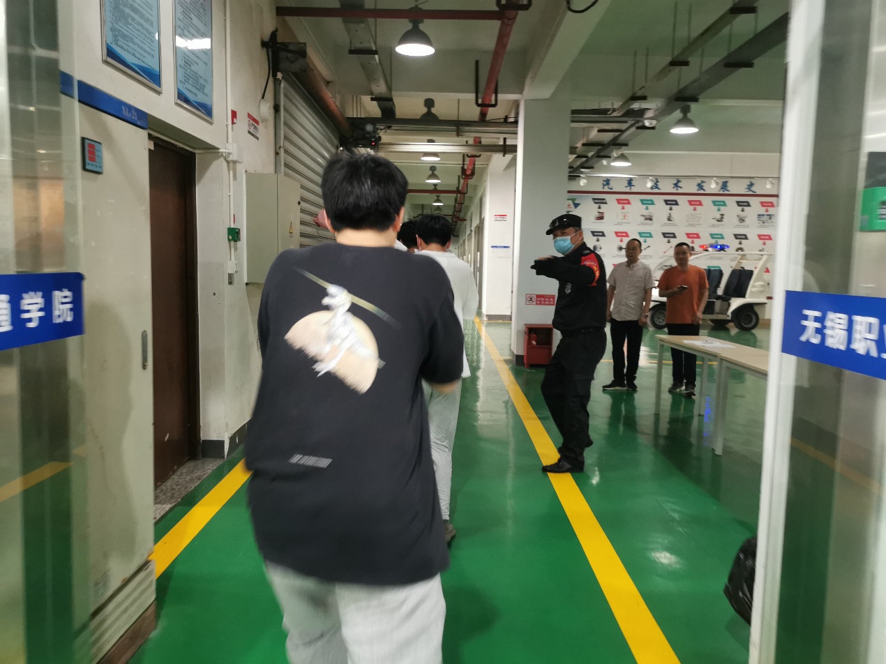 演练活动开始前,保卫处严尉雄、程晓东对实验实训室专职管理员进行消防点检知识培训,讲解了灭火器的使用注意事项,于会权处长介绍了本次实验实训室消防应急演练的目的、疏散及灭火演练的流程、注意事项,并宣布实战演练开始。