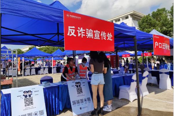 以新生入学为契机,报到当天校党委保卫部组织师生在现场发放了防诈宣传册,并督促、指导新生安装“国家反诈中心 ”APP。学校还邀请到了无锡市公安局滨湖分局雪浪派出所民警王俊皓作防范诈骗专题讲座。10月25日,新生安全信息员们走进江南大学,参加了“反诈锡引力”活动。